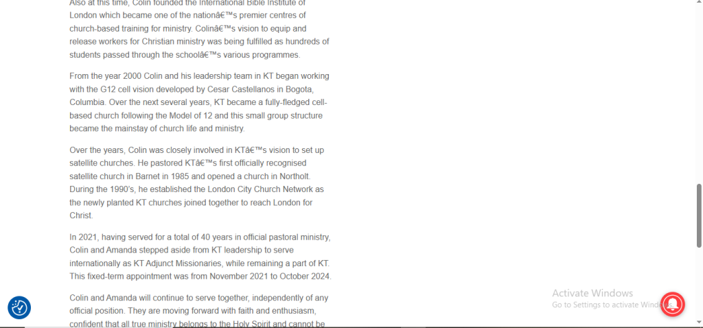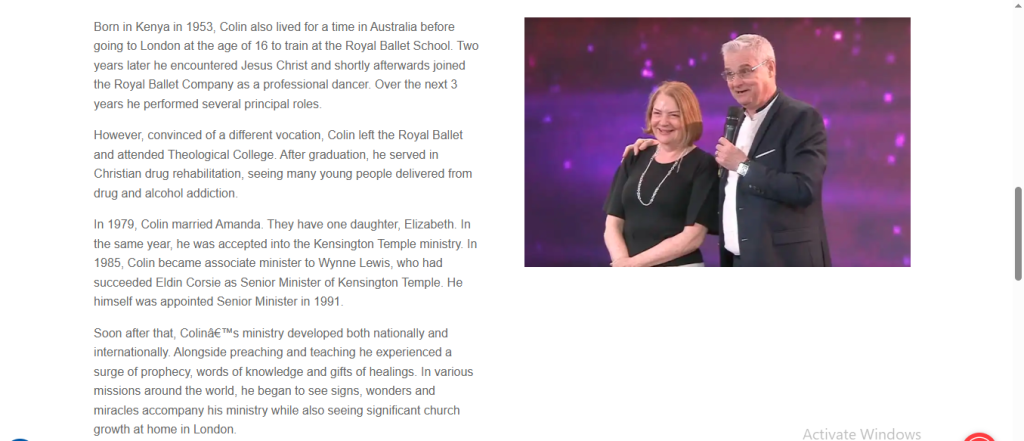 Colin’s ministry career is most prominently associated with Kensington Temple, one of the largest and most influential churches in London.