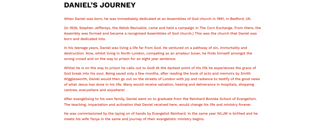 - Founded Walking Like Jesus Ministries, leading some of the largest gospel campaigns in the UK.