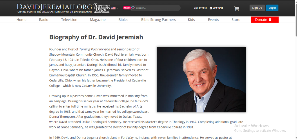 David Jeremiah’s Turning Point with Dr. David Jeremiah program is one of the most popular Christian broadcasts worldwide. The show airs on major television networks such as TBN, Daystar, INSP, and Lifetime, as well as on radio stations across North America and internationally.