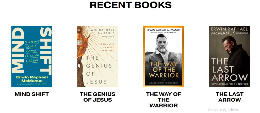 Erwin McManus is a prolific author, known for his thought-provoking and transformative books. His works focus on spirituality, leadership, and personal growth. Notable publications include: