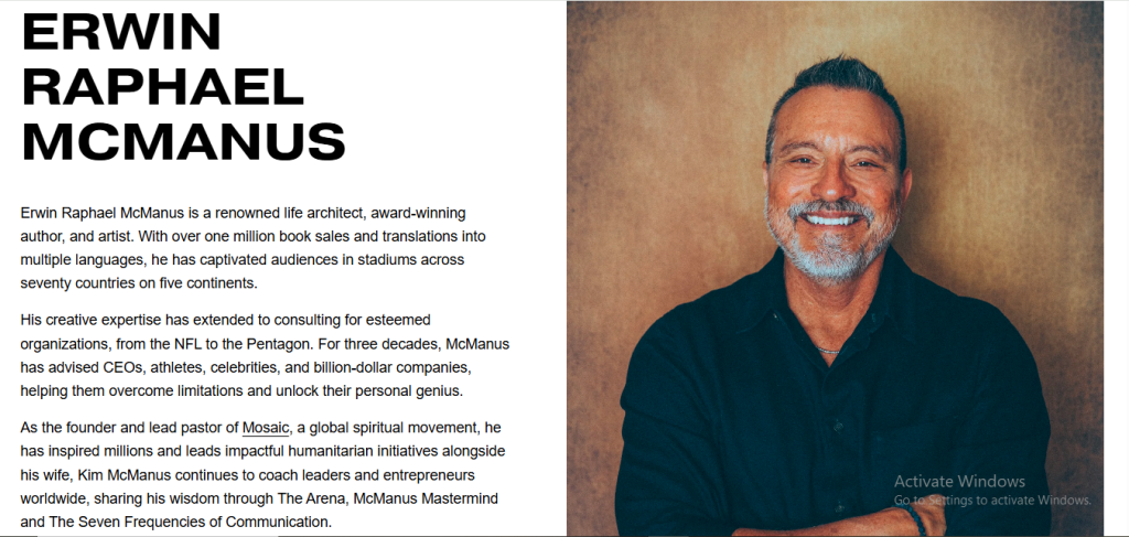 Erwin McManus is widely recognized for his innovative approach to church leadership. He has redefined what a modern church can look like by integrating art, culture, and creativity into ministry. Mosaic Church has been celebrated as a model for multicultural, creative, and purpose-driven ministry.