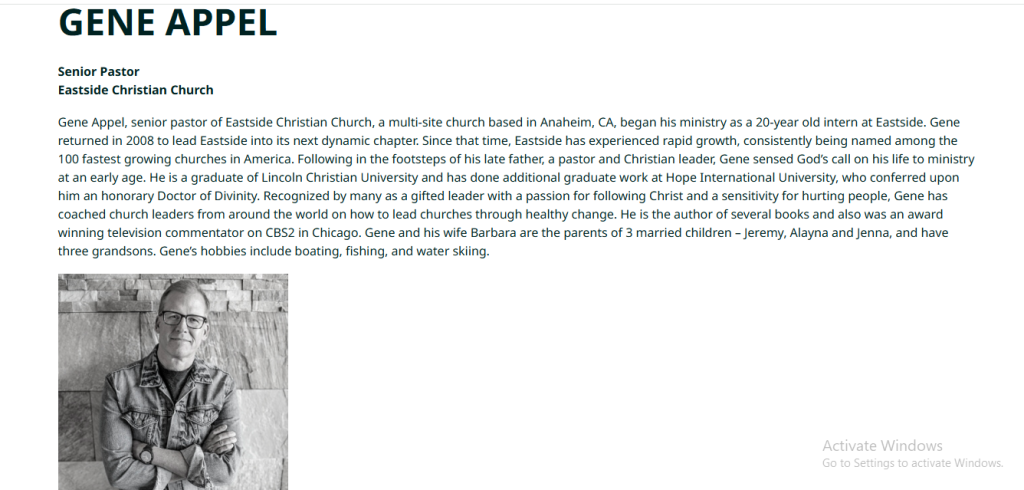Through these achievements, Gene Appel has built a legacy of leadership, inspiration, and service that continues to impact the lives of Christians worldwide.