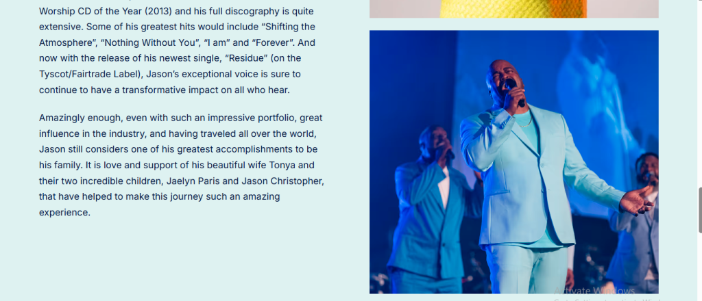 Jason began singing at a very young age and showed an exceptional gift in worship leading. Growing up in a musical and ministry-oriented household helped him discover his calling early, and these early experiences became the building blocks of his future career as both a singer and pastor.