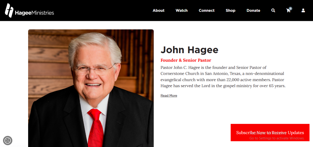 Hagee is also the founder of Hagee Ministries, which broadcasts sermons and teachings to over 190 nations worldwide. His messages focus on salvation, end-time prophecy, the second coming of Christ, and unwavering support for Israel.