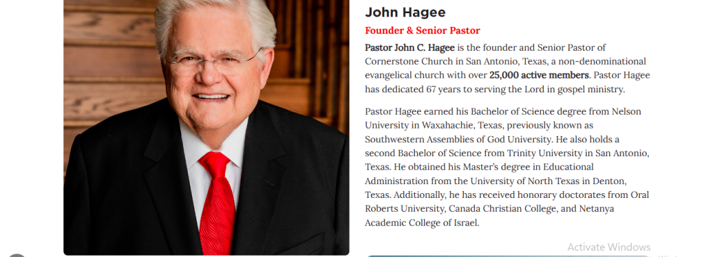 Hagee’s leadership and influence have earned him recognition as one of the most prominent voices in global evangelical Christianity.