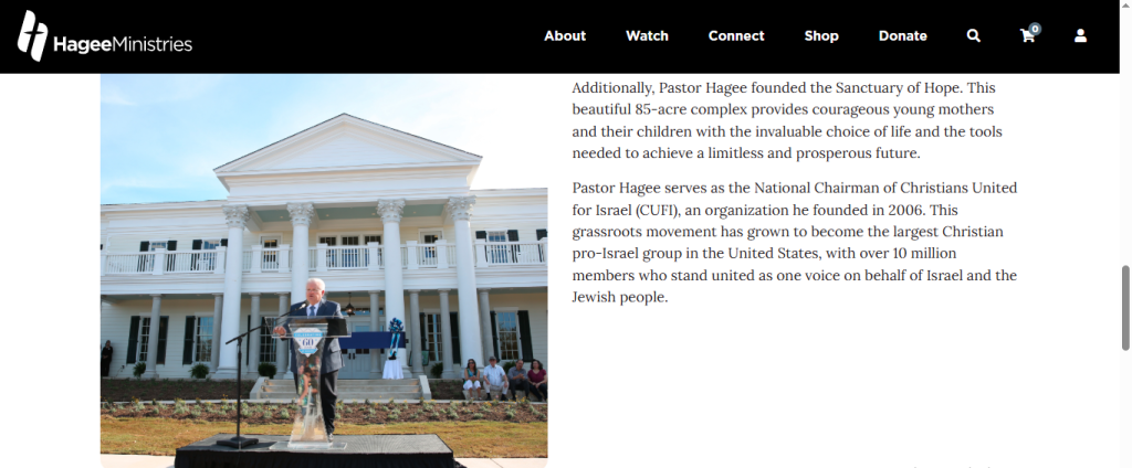 In 2006, he founded Christians United for Israel (CUFI) — one of the largest pro-Israel Christian organizations in the world. Through CUFI, Hagee has built bridges between Christians and the Jewish community, advocating for peace, unity, and biblical solidarity.
