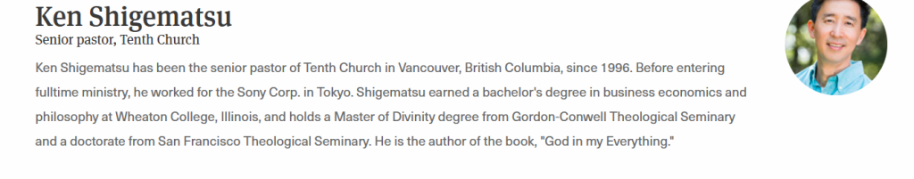 Ken Shigematsu is best known for his role as the lead pastor of Tenth Church in Vancouver, one of Canada’s most historic and influential churches. Leading a church in a post-Christian urban setting has shaped his ministry philosophy significantly. Rather than focusing solely on programs or attendance, Ken emphasizes spiritual depth, humility, and attentiveness to God.