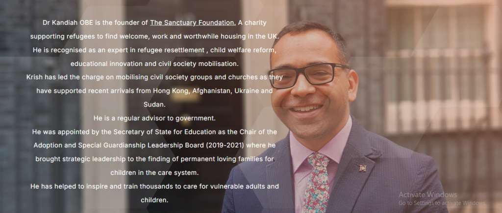 Krish Kandiah is best known for founding Home for Good, a charity aimed at transforming the lives of children in the care system. The organization focuses on fostering and adoption as sustainable solutions for children who might otherwise grow up in institutional care. Under his leadership, Home for Good has mobilized churches, volunteers, and social workers to provide loving, permanent homes for hundreds of children.